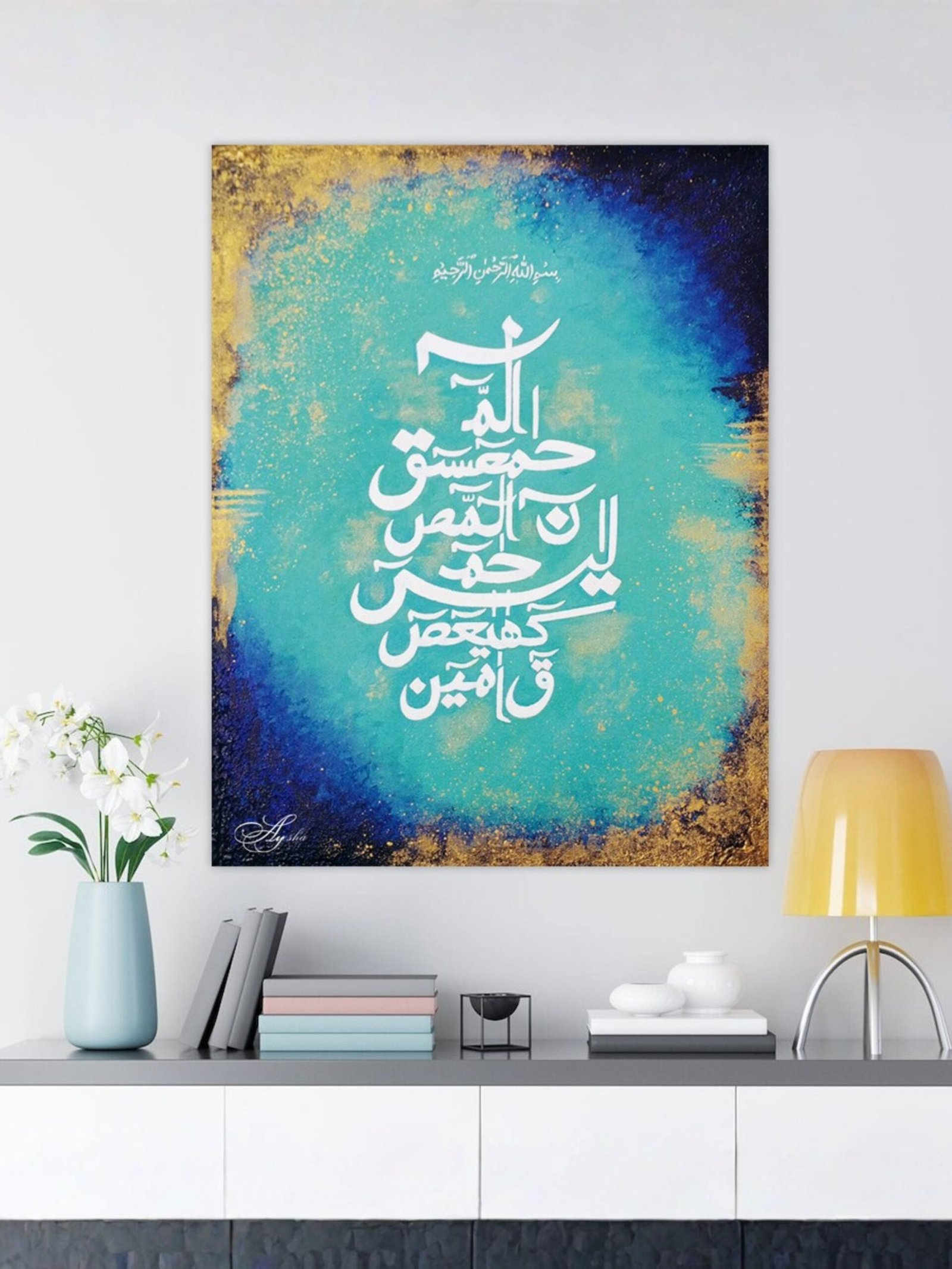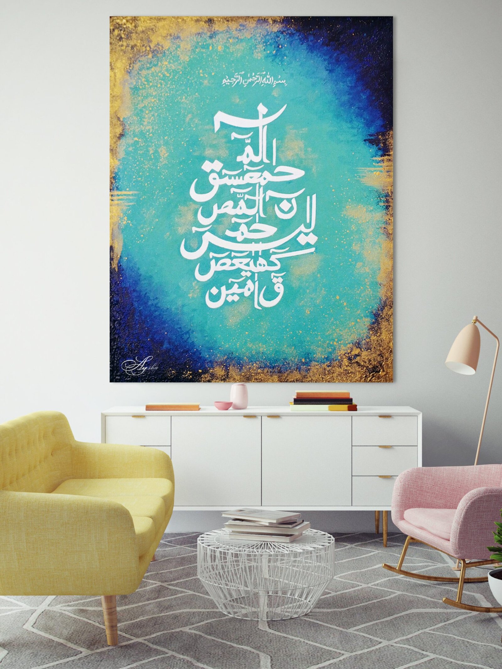 The Lohe Qurani Arabic Calligraphy by Ayesha Art Gallery beautifully represents sacred Islamic verses through elegant Arabic calligraphy. Hand-painted with artistic precision, this spiritual artwork brings devotion, peace, and refined beauty to prayer rooms, homes, offices, and Islamic art collections.