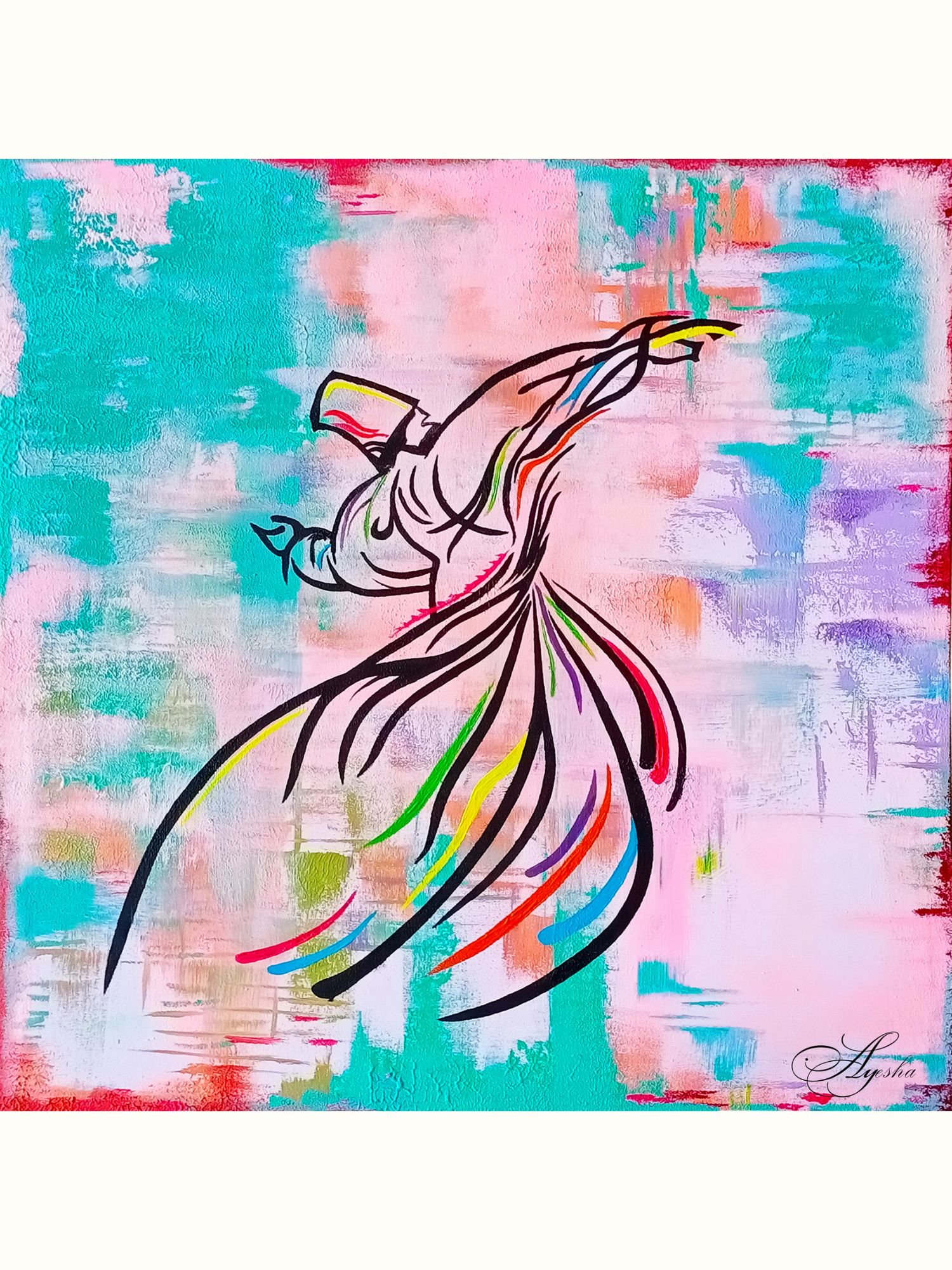 Bring serenity, movement, and spiritual harmony into your space with the Sufi Whirling Dervish Abstract Painting. by Ayesha Art Gallery, This expressive artwork captures the graceful motion of the whirling dervish—a timeless symbol of devotion, inner peace, and spiritual rhythm. The abstract strokes, soft textures, and balanced color palette create an emotional connection that uplifts your surroundings while adding depth and elegance to your décor.
